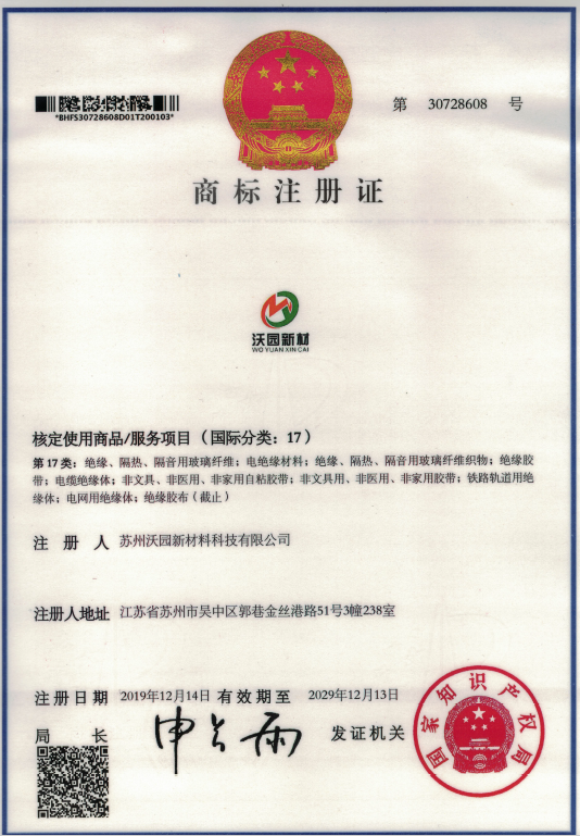 此文关键字:沃园新材商标证